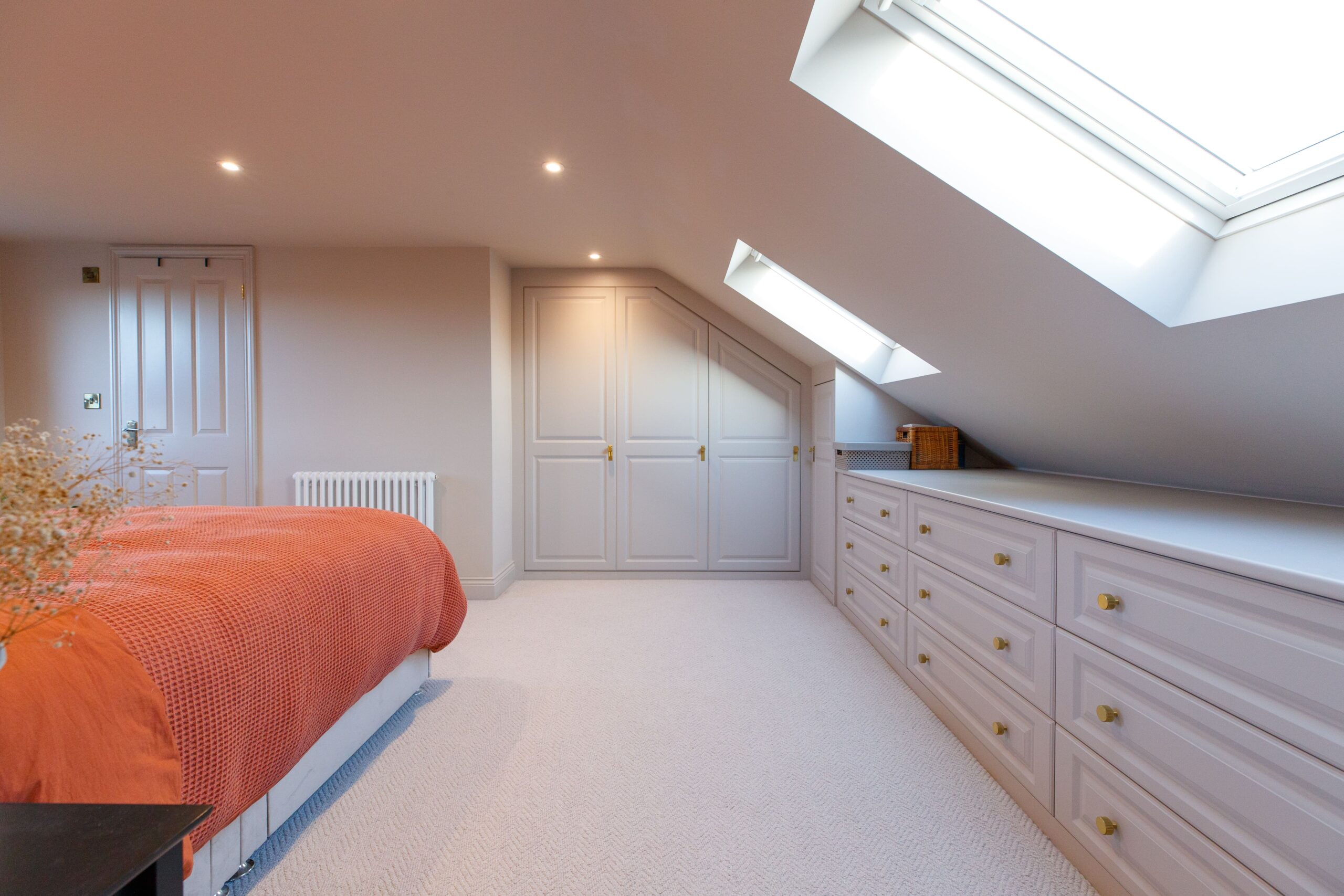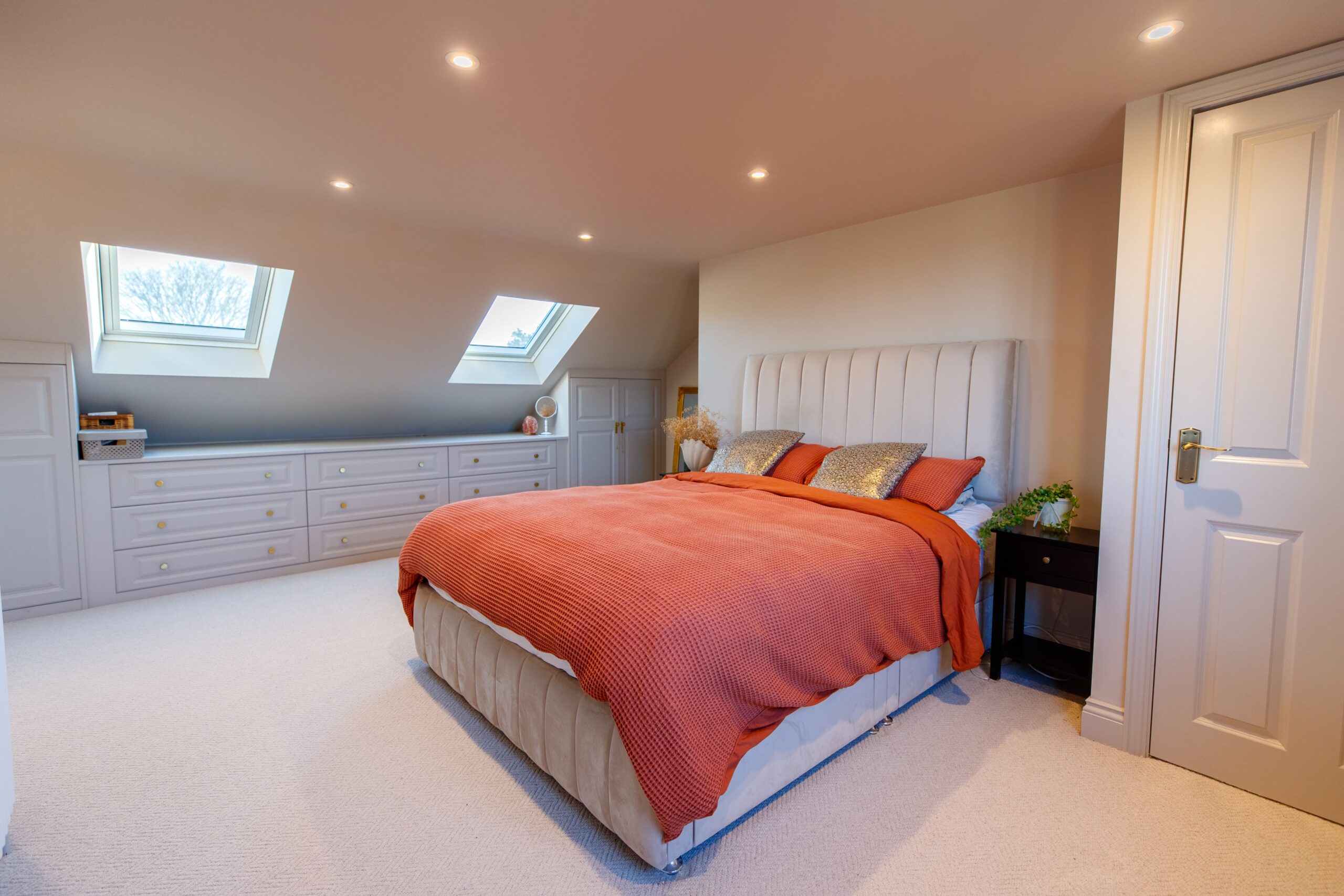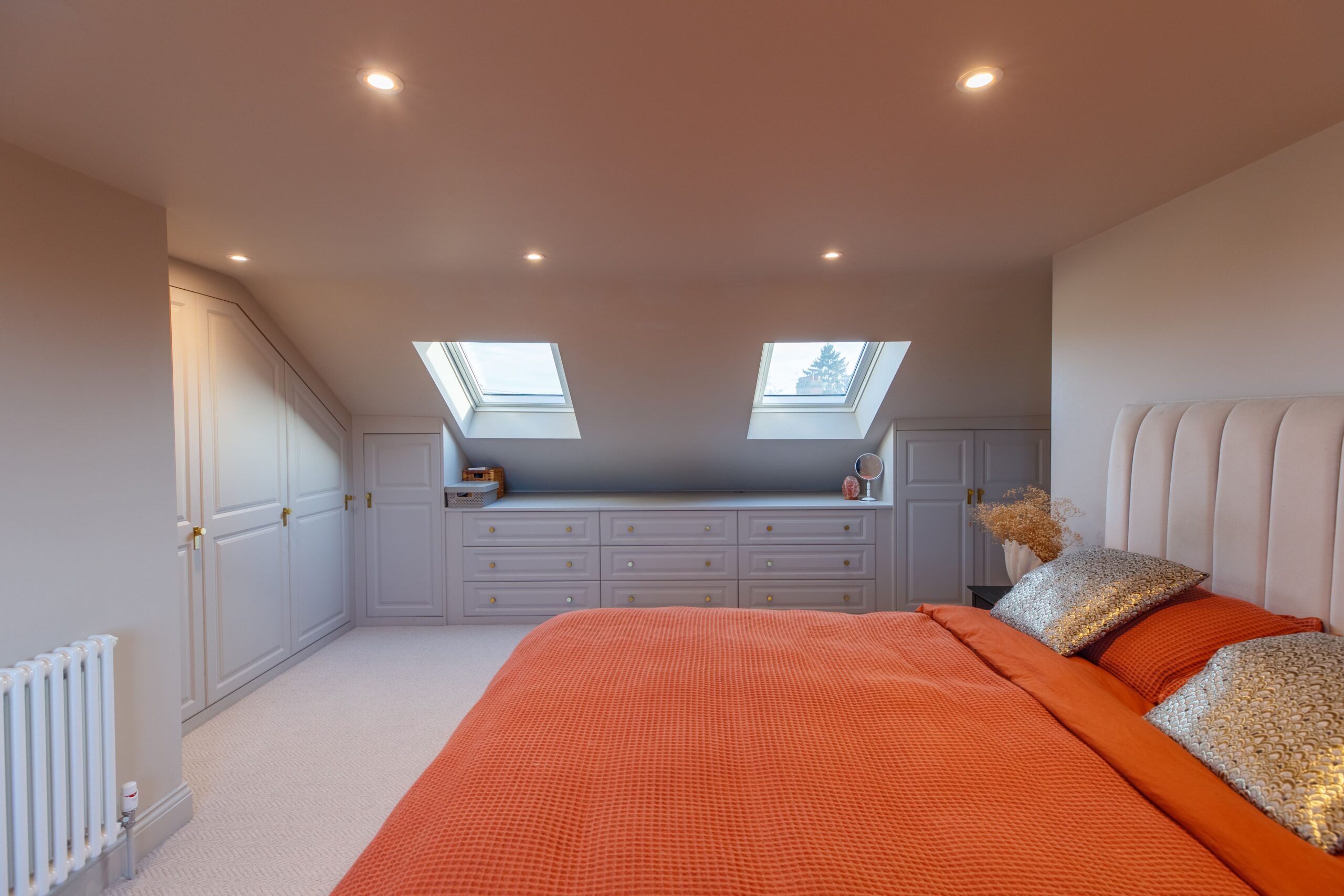 The clients wanted a practical and stylish solution, including a new master bedroom with an ensuite. They also had bespoke wardrobes fitted, ensuring every inch of storage had its place and giving the finished space a sleek, organised feel.