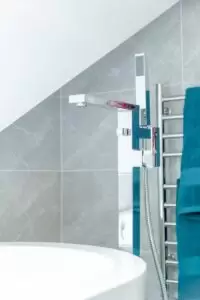 We also installed a four-piece bathroom suite in the loft, including a shower and freestanding bath, which looks fantastic underneath the large SK06 VELUX® window.