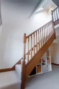 The main loft area was converted successfully, thanks to three large crank steel beams designed by the engineers at DB Structural. This, paired with structural timbers and joist work, allowed the area to remain in line with the existing hipped roof. We were able to open up the spaces further and connect these to the new loft area too. We removed a wall and room downstairs to create a large landing area, which now houses a fully bespoke solid mahogany stairs leading up the loft.