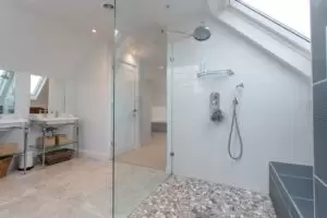 We initially came to work on this conversion thanks to our design team, who had already handled all of the planning and permissions. The design team subsequently recommended us to the client, and, following referral, we quoted and secured the job, starting work after six months due to our lead time. We knew from the beginning that the client was looking to create a great space that would be open and flowing, complete with a stunning bathroom that PHS Bathrooms in Bletchley supplied. PHS Bathrooms have a 3D experience system to program designs, allowing them to walk the client through a 3D rendered version of the bathroom before it was built and installed.